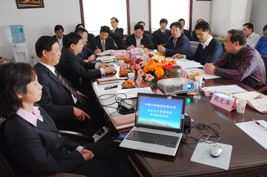 3月19日,集團節能板塊安全管理流程再造總結驗收會在武漢建筑材料工業設計研究院有限公司召開。集團驗收組成員安環部部長王祿田、高級經理欒軍;中材節能發展有限公司總經理何新平、副總經理魏文華,安監部部長朱理;武漢建筑材料工業設計研究院有限公司總經理姚元君、黨委書記王聰志、副總經理馮明、王海燕、徐征、郭超等參加會議。