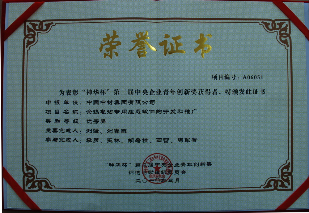 3月30日,“神華杯”第二屆中央企業(yè)青年創(chuàng)新獎(jiǎng)表彰大會(huì)在國務(wù)院國資委隆重召開。國務(wù)院國資委主任、黨委書記李榮融為獲獎(jiǎng)單位頒獎(jiǎng)。中材節(jié)能報(bào)送的“余熱電站專用組態(tài)軟件的開發(fā)和推廣”項(xiàng)目獲得了優(yōu)秀獎(jiǎng)。