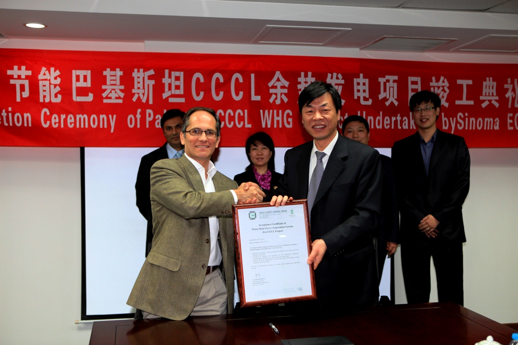 巴基斯坦Cherat Cement Company -CCCL(3200t/d)純低溫余熱電站于2009年1月正式開(kāi)工,經(jīng)過(guò)一年多的努力,此余熱發(fā)電工程于2010年1月29日并網(wǎng)發(fā)電,并于同年3月30日順利通過(guò)各項(xiàng)指標(biāo)考核,2010年3月獲得業(yè)主頒發(fā)的接收證書(shū)。業(yè)主對(duì)公司的余熱發(fā)電技術(shù)裝備、技術(shù)服務(wù)水平及項(xiàng)目管理水平表示非常滿意。業(yè)主首席執(zhí)行官Azam先生于2010年4月19日,專(zhuān)程赴華答謝并為中材節(jié)能發(fā)展有限公司簽署了最終接收證書(shū)。至此,中材節(jié)能發(fā)展有限公司總承包的巴基斯坦CHERAT水泥公司余熱電站工程已全部按合同履約完成。
