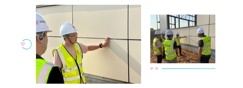 Under the scorching sun, Gou Linlin, who is in charge of R&D of Sinoma Chizhou, while sticking to the front line to seize the progress, still leads everyone to learn from each other at the project site every day, explains the application fields and installation methods of calcium silicate board series products for the staff on the spot, and teaches them the knowledge and experience he learned without any reservation. He always says: “All hands make light of the fire, personal ability is limited, only by leading everyone to make rapid progress together, in order to build a team with strong business ability and competitiveness.